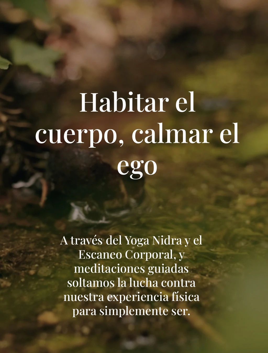 Vanessa, terapeuta transpersonal con enfoque corporal, integra el trabajo meditativo con el cuerpo como vía directa de acceso a la conciencia. A través de la técnica de meditación Nidra y herramientas de integración corporal, facilita procesos de regulación emocional, descanso profundo y transformación interior.