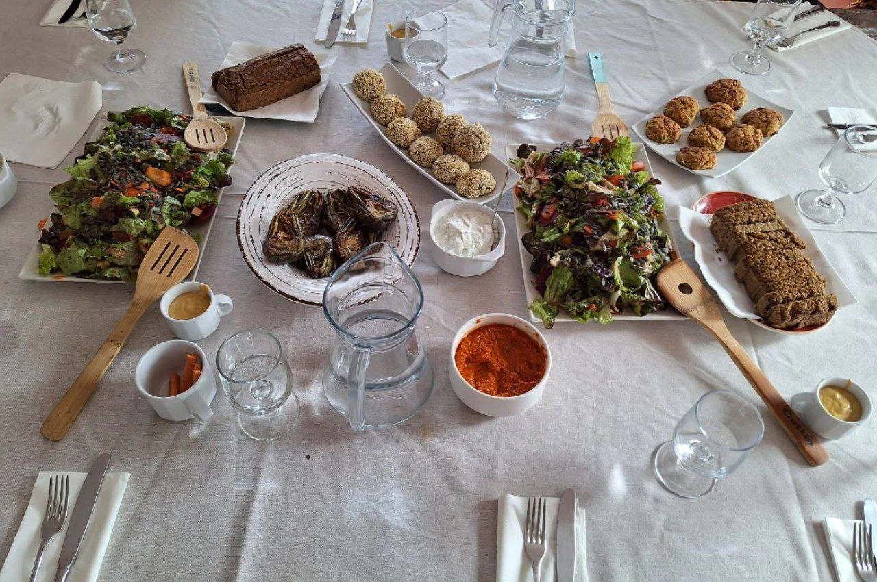 Menú basado en la filosofía higienista: - Ovo-lácteo vegetariano, de temporada, variado y fresco. - Respetando las combinaciones adecuadas de alimentos para facilitar las digestiones y promover la buena absorción de los nutrientes. - Buscando sabores naturales y gustosos. ¡Pero lo mejor es el amor con los que los preparan Aroa y Bernat!